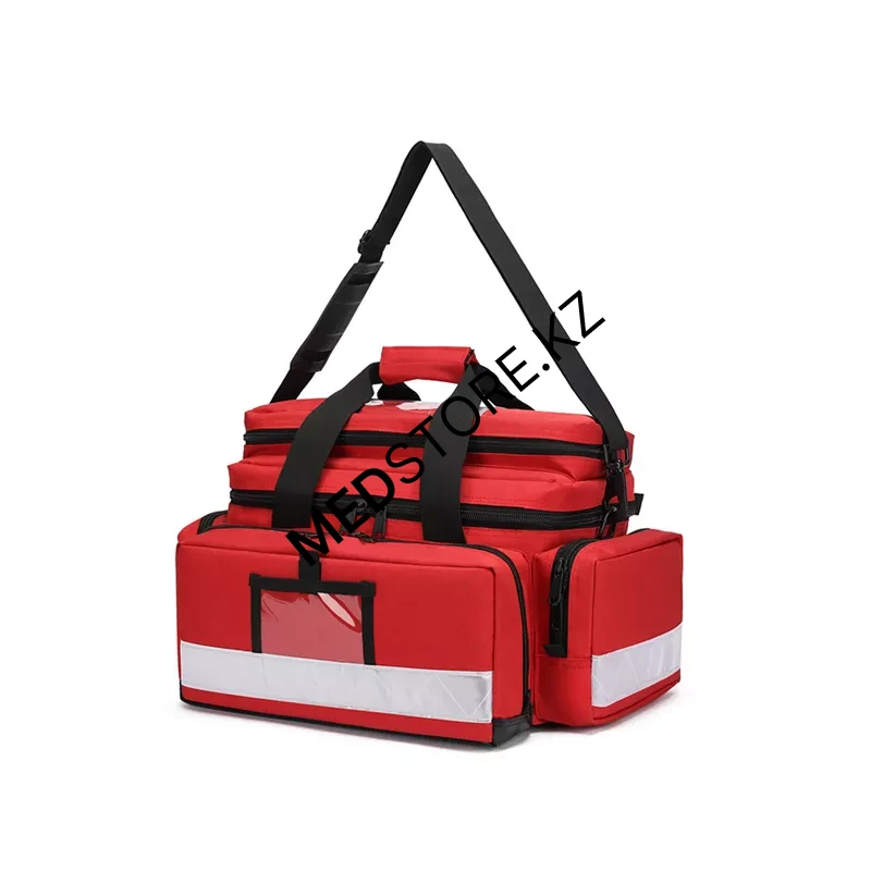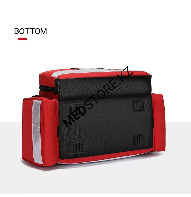 Сумки выполнены из синтетической водоотталкивающей ткани Оксфорд с ПВХ покрытием, водонепроницаемая, которая легко дезинфицируется. Специальные конструкции сумок обеспечивают надежную защиту всех вложений, а также удобный доступ к ним. Все сумки снабжены усиленными молниями и крепким дном, что дополнительно увеличивает срок эксплуатации изделия. Большое количество внешних и внутренних карманов обеспечивает удобное размещение медицинского и личного имущества. Все сумки имеют на своем корпусе светоотражающие элементы для безопасной работы в темное время суток, место крепления шевронов, держатель информационной таблички для обозначения набора/указания номера бригады/другой информации. Для транспортировки имеются удобные крепкие ручки и плечевой ремень с накладкой