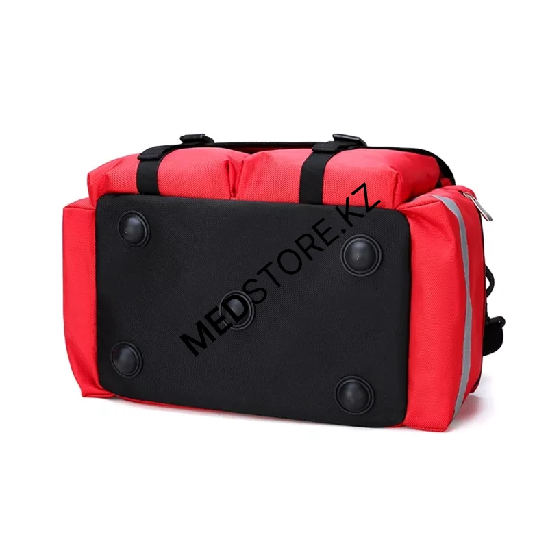 Сумки выполнены из синтетической водоотталкивающей ткани Оксфорд с ПВХ покрытием, водонепроницаемая, которая легко дезинфицируется. Специальные конструкции сумок обеспечивают надежную защиту всех вложений, а также удобный доступ к ним. Все сумки снабжены усиленными молниями и крепким дном, что дополнительно увеличивает срок эксплуатации изделия. Большое количество внешних и внутренних карманов обеспечивает удобное размещение медицинского и личного имущества. Все сумки имеют на своем корпусе светоотражающие элементы для безопасной работы в темное время суток, место крепления шевронов, держатель информационной таблички для обозначения набора/указания номера бригады/другой информации. Для транспортировки имеются удобные крепкие ручки и плечевой ремень с накладкой.