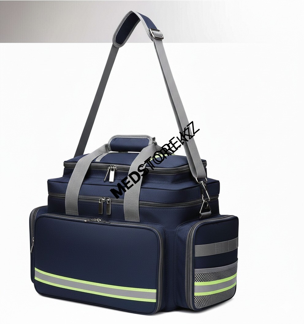 Сумки выполнены из синтетической водоотталкивающей ткани Оксфорд с ПВХ покрытием, водонепроницаемые, легко дезинфицируются. Специальные конструкции сумок обеспечивают надежную защиту всех вложений, а также удобный доступ к ним. Все сумки снабжены усиленными молниями и крепким дном, что дополнительно увеличивает срок эксплуатации изделия. Конструкция сумки обеспечивает удобное размещение медицинского и личного имущества. Все сумки имеют на своем корпусе светоотражающие элементы для безопасной работы в темное время суток, место крепления шевронов, держатель информационной таблички для обозначения набора/указания номера бригады/другой информации. Для транспортировки имеются удобные крепкие ручки и плечевой ремень с накладкой.
