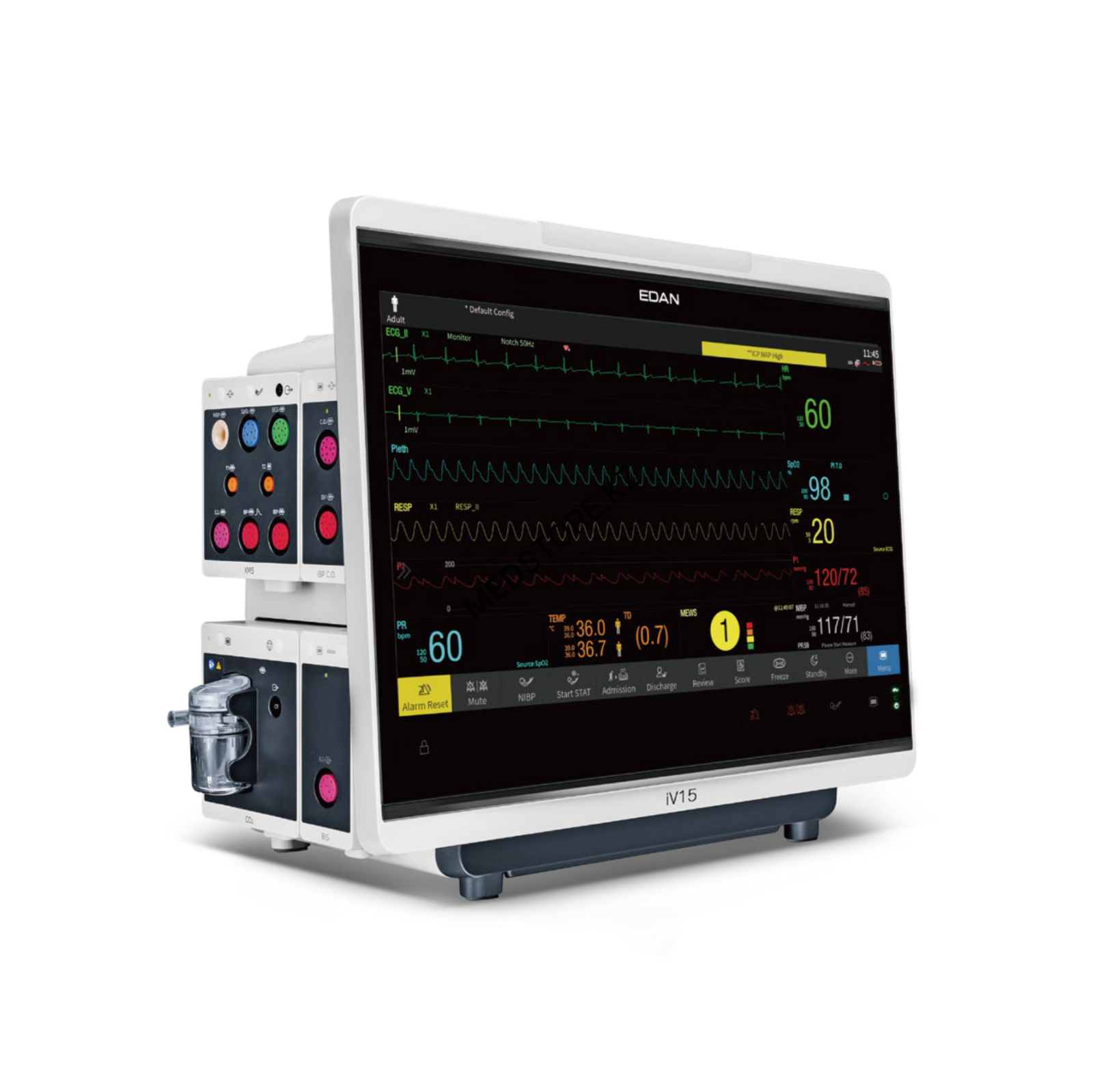 Edan iV15 — модульный многофункциональный монитор для критически больных пациентов, оптимизированный для использования в ICU, операционных, реанимационных и боксах неотложной помощи. Монитор обеспечивает технологический прогресс, сохраняя при этом простоту и понятность рабочего процесса. Оснащен 15,6″ Full‑HD сенсорным дисплеем, с возможностью управления жестами и регулировки громкости и яркости в одно касание.