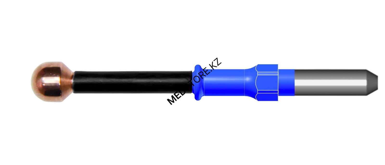 Электрод оснащён штекером диаметром 4 мм, обеспечивающим совместимость со стандартными монополярными держателями и электрохирургическими аппаратами. Конструкция выполнена из термостойких и электропроводящих материалов, рассчитанных на эксплуатацию в условиях операционного блока.