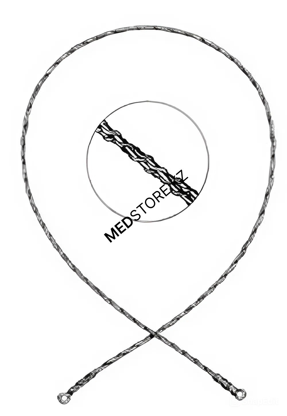 Пила проволочная витая длиной 400 мм предназначена для распиливания костной ткани, в том числе костей черепа, между предварительно высверленными отверстиями. Инструмент применяется в нейрохирургии, травматологии и общей хирургической практике при выполнении оперативных вмешательств, требующих точного и контролируемого рассечения костных структур.